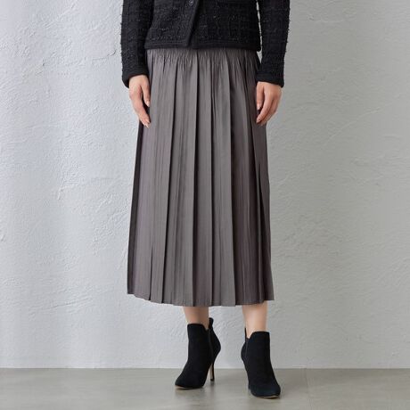 ジャカードでシャーリングを表現したスカートです。伸縮性がありウエスト周りをすっきりと見せてくれるので、トップスを重ねてももたつくことなく綺麗に着ていただけます。ウエストはゴム仕立てで着脱しやすい仕様です。