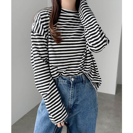 スラブ ボーダー オーバーサイズ シアー 長袖 Tシャツ