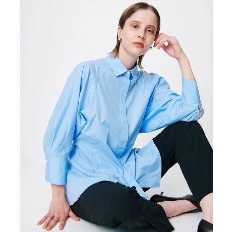 袖は8分袖の丈感で、肘までぐっとたくし上げて袖のフォルムを出すのがオススメの着こなしです。