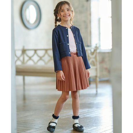 [型番:RSKGSA0906]■デザイン天竺に繊細なプリーツを施したスカッツです。インパンツ付きとなっており、動きが活発なお子様にも安心して着用していただけるアイテムです。■ポイントポリエステルと綿の混紡素材を使用しており、肌触りが良くお取り扱いのしやすい素材となっております。■カラーベーシックなネイビーとトレンド感のあるブラウンの2色展開です。※撮影商品はサンプルを使用しているため、実際にお届けする商品と仕様やサイズが異なる場合がございます。