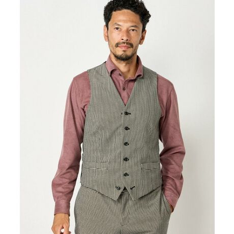 【トリコットのコーデュロイにプリントを施した千鳥格子柄ベスト】