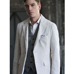 同色同素材のジャケット(M0133FJ007)パンツ(M0133FP007)を合わせてスリーピースでの着用がおすすめです。