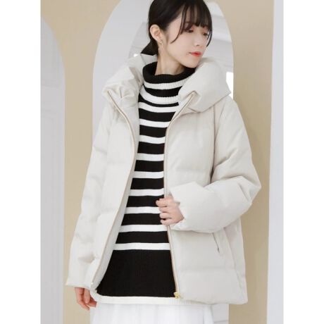 シームレスですっきり見えする上品なデザインに仕上げたダウンコート。
