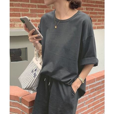 コーデに迷わない半袖プルオーバー+パンツのセットアップ。