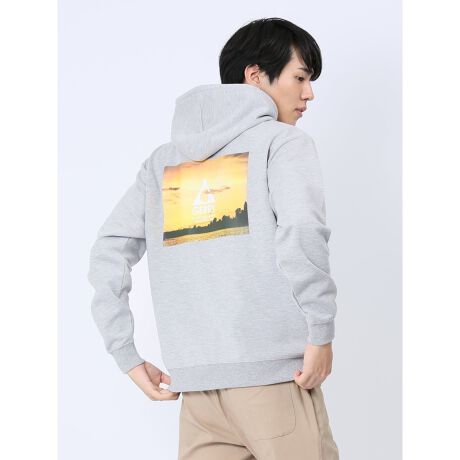 カンガルーポケットが可愛い、プルオーバータイプのパーカーです。コロラドの壮大な風景画のバックプリントが存在感抜群。左袖口のロゴ刺繍がアクセントになっています。一枚着としてはもちろん、アウターのインナーにも便利なアイテムです。