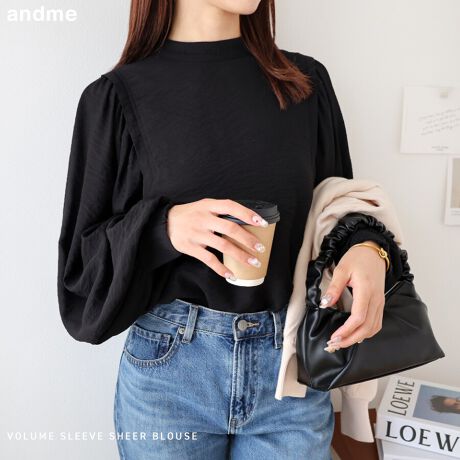 ボリューム袖 ハイネック シアー シャツ ブラウス