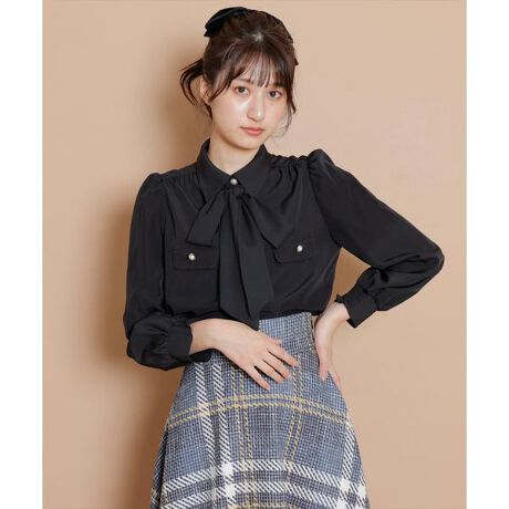 【きちんと感のある洒落感が品良く着映える、リボンボウタイステッチシャツブラウス】【Point】・存在感のある配色ステッチ×ブラックボウタイが、一枚で品の良い着映えを叶えるシャツブラウス。・パールボタンが大人レディな印象に。ボウタイを外して着ていただいても、フロントのパールボタンがアクセントになります。・さらっとした肌触りの生地を使用しており、ストレッチが効いているので着心地よく、長時間の着用も安心して着ていただけます。・ご自宅でお手入れができるのも嬉しいポイント♪ケア方法:手洗い可能透け感:なし(オフのみ多少あり)裏地:なし伸縮性:あり光沢感:なし生地の厚さ:中肉
