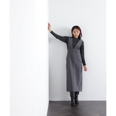 [design & styling]シンプルですっきりとした美しいナローシルエットのジャンパースカート。太めのショルダーストラップデザインと、ウエストラインはフロントに向かってほんのり山型に高さをだしているので、着用時のスタイルアップ効果が期待できます。コンパクトトップスとレイヤードしてスタイリッシュな着こなしから、ボリューミィなブラウスなどを合わせればフェミニンMIXコーディネートも楽しめます。後ろファスナーで着脱[fabric]きれいな梳毛調ポリエステルを使用。シワになりにくく高級感のある素材を使用しています。※裏地付き※モデルの着用画像の場合、光の当たり具合により、実際の色味と異なって見えることがございます。色味は、商品単体の画像をご参照ください。