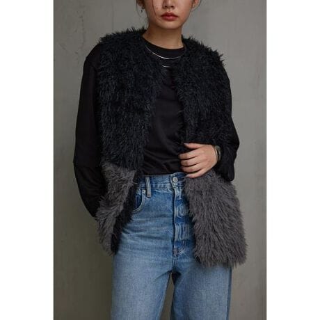 2023 Autumn&Winter item ・軽さと柔らかさが特徴の毛足が長いファー素材を使用したファーベストです。・バイカラーの切り替えがポイントのファーベストと、単色のカラー展開です。 ・バイカラーは同系色の配色なので着やすいデザインとなっており、コーディネートにアクセントをプラスしてくれます。・ウエスト位置の配色切り替えがスタイルアップ効果も期待できます。