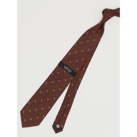 秋冬のビジネスシーンにふさわしい、小柄のフレスコタイです。フレスコ織りのざっくりとした編地が、Vゾーンに奥行きとこなれ感を与えてくれます。普通のネクタイに飽きた方や、こだわりある一本をお探しの方におすすめです。