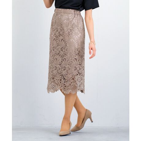 レーススカート ロングスカート タイトスカート スカラップレース きれいめスカート オケージョン対応 セレモニーコーデ 大人フェミニン 上品コーデ 通勤スタイル