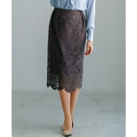 レーススカート ロングスカート タイトスカート スカラップレース きれいめスカート オケージョン対応 セレモニーコーデ 大人フェミニン 上品コーデ 通勤スタイル