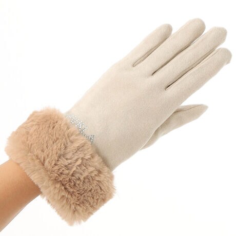 [型番:FRJ238250T]ジャージ手袋(フェイクファー・ロゴラインストーン付)タッチパネル対応(親指・人差指・中指の指先に刺しゅう有り。導電糸刺しゅうによりスマホ操作が可能です。)