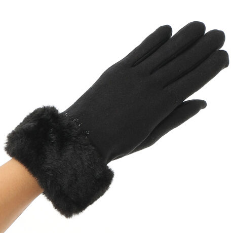 [型番:FRJ238250T]ジャージ手袋(フェイクファー・ロゴラインストーン付)タッチパネル対応(親指・人差指・中指の指先に刺しゅう有り。導電糸刺しゅうによりスマホ操作が可能です。)