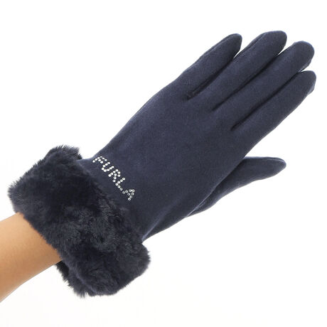 [型番:FRJ238250T]ジャージ手袋(フェイクファー・ロゴラインストーン付)タッチパネル対応(親指・人差指・中指の指先に刺しゅう有り。導電糸刺しゅうによりスマホ操作が可能です。)