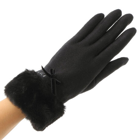 [型番:FRJ238450T]ジャージ手袋(フェイクファー・リボン付)タッチパネル対応(親指・人差指・中指の指先に刺しゅう有り。導電糸刺しゅうによりスマホ操作が可能です。)