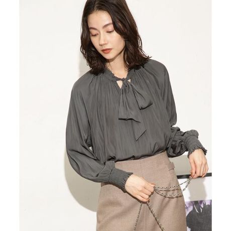 ギャザーネックボウタイブラウス