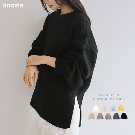 天竺編み ボックスシルエット 長袖 ニットトップス