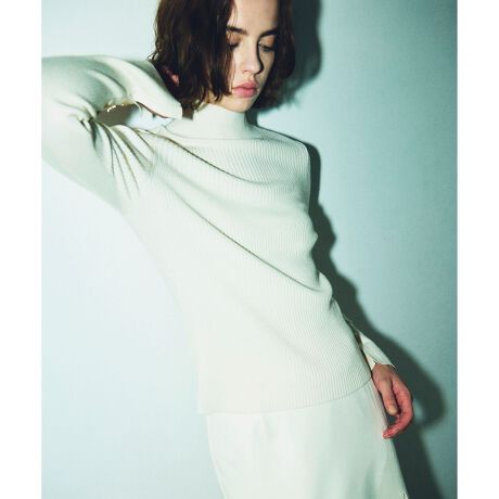 ウォッシャブルウールのリブニットトップス。