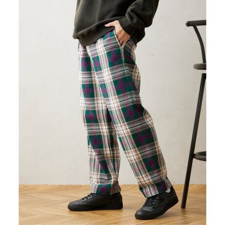 普段ネルシャツに使用されているヘビーネルチェックを使用した、寒い季節でも履くことができるイージーパンツ。