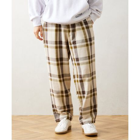普段ネルシャツに使用されているヘビーネルチェックを使用した、寒い季節でも履くことができるイージーパンツ。