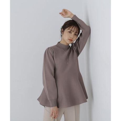 【商品特徴】ひらりと広がるペプラムラインが印象的なニットトップス。ウエストを高めの位置で絞っているので、腰まわりをカバーしながらスタイルアップが期待できそう。袖はふくらみのあるパフスリーブなので、一枚で上品かつフェミニンなコーディネートを演出します。【スタイリング】フロントスリットパンツ(店舗商品番号1213230508)とのコーディネートがお勧めです。