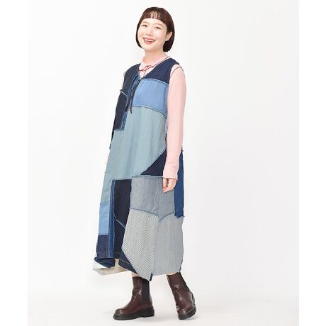 ◆ パッチワーククラフトのようなユニークなワンピース (大きいサイズ) ◆中国の工場さんの裁ち落としのはぎれをつなぎ合わせて一枚の布にし そこから三角ジャンスカが生まれました。パッチワークで作っており 1枚1枚生地の出方が異なるので世界に1枚しかない「あなただけのアイテム」になります。デニム素材なので 合わせるアイテムを選ばずスタイリングを華やかに仕立てます♪前後着用可能なのでコーディネートのバリエーションも広がります!Olaca model:H164 B94 W82 H103 *3サイズ着用【この商品は、サスティナブルの観点により、デットストックの生地を接ぎ合せて作っています。その為、使用生地の種類やパーツの出方等、1枚1枚違いがあります。商品製作意図を十分ご理解の上、他の商品では味わえない雰囲気をお楽しみ下さい。】《お取り扱いについて》・着用またはお取り扱いの際は、アテンションタグや洗濯ネームを必ずご確認ください。《注意事項》※商品の色や質感をできるだけ忠実に再現するよう心がけていますが、撮影場所やお使いのモニター環境により、実物と若干異なる場合がございます。予めご了承ください。※写真を許可無くコピー・転用することは固くお断りします。