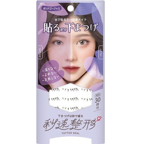 [型番:4901525011303]秒速でかわいい。誰でも一瞬で別人整形級。水に濡らして貼るだけ下まつげタトゥーシール。なりたい目の形に合わせて貼るだけで、滲まずよれないゴージャスな下まつげメイクが簡単に。