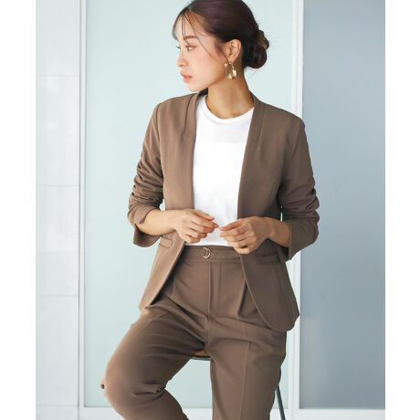 カラーレスジャケット & テーパードパンツ セットアップスーツ
