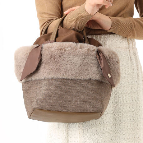 手触りの良いエコファーとツイード風生地のコンビトート。