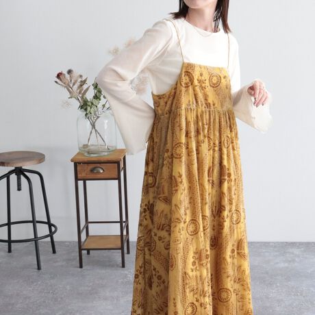 カジュアル使いにもピッタリのベロアキャミワンピース