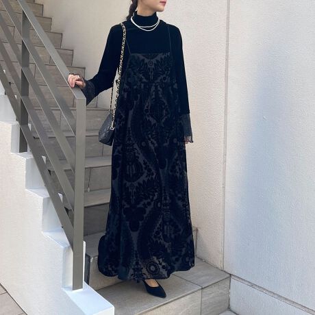 ・ベロアのオーパール加工をした素材感が華やかなキャミワンピース