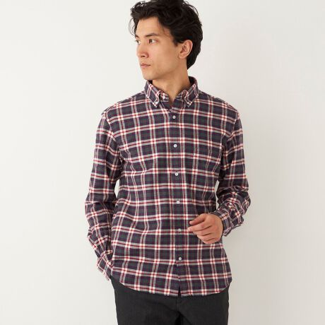 SHIPS Colors: ネルチェック ボダンダウン カラー ロングスリーブ ドレスシャツ