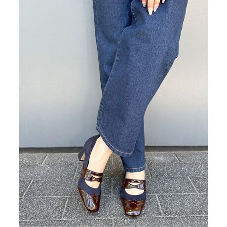 安定感のある太ヒールで歩きやすく、甲の開きがスタイリングに抜け感をプラス。