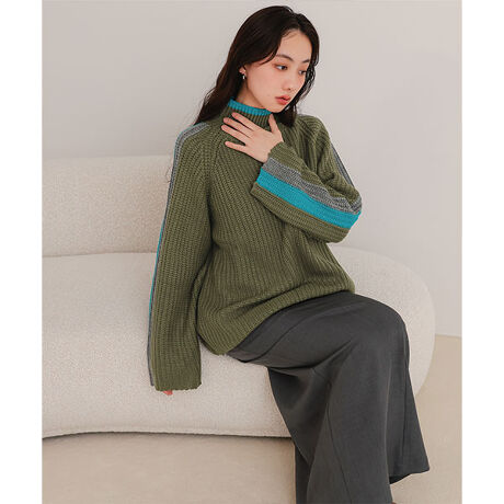 配色ラインハイネックニット