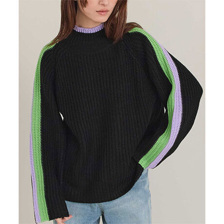 ・袖の2色の配色ラインがポイントのハイネックニット。・ハイネックデザインが小顔効果も抜群。・ゆったりとしたサイズで抜け感を演出。[型番:RCXX0770]