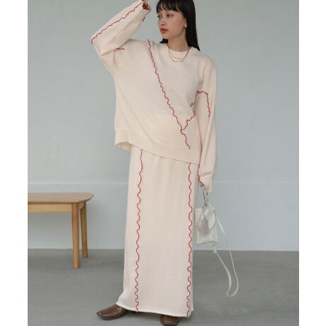 【セットアップ対応】ウェーブメロウニットスカート
