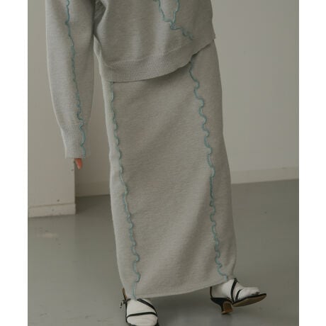フロントに入ったウェ−ブメロウが縦長ラインを強調し、細見え効果抜群なニットスカート。
