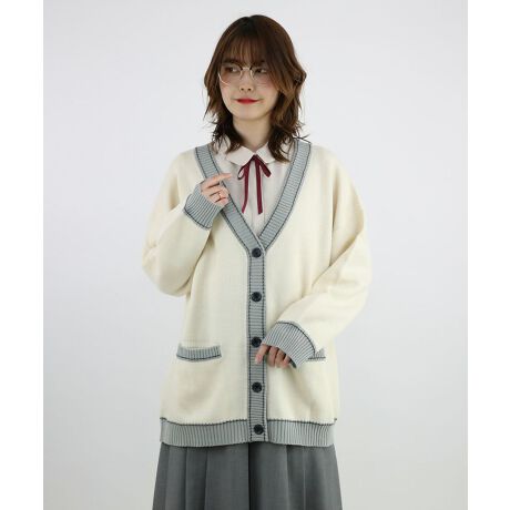 配色ステッチ使い腰丈ニットカーディガン【洗える】