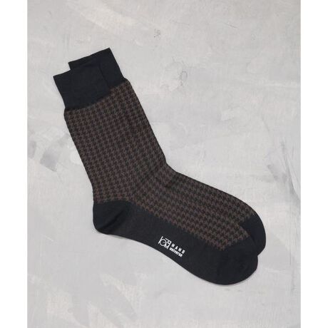 デイリーシーンに馴染む千鳥柄ソックス。ミドルゲージ編みで程よく厚みある生地感で暖かみがあり、履き心地も抜群。ブラックとネイビーの2色展開で、秋冬らしいカジュアルスタイリングに仕上げてくれます。
