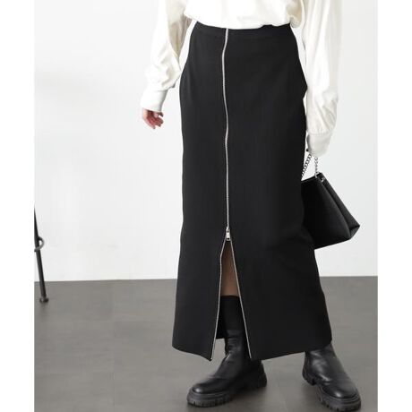 フロントジップデザインが今季らしいポイントのニットロングスカート。柔らかくスポンジのように膨らみがあり、軽くハリ感をもつニット素材を使用。毛羽立ちにくくスッキリとした表面感です。センタージップの開閉で、お好みのスリット丈にアレンジ可能。前後逆でも着られるデザインです。キャミビスチェやブラウスをインしてキレイめに合わせたり、ビッグスウェットやミドル丈ニットカーディガン合わせでカジュアルな着るのもおすすめです。※モデルの着用画像の場合、光の当たり具合により、実際の色味と異なって見えることがございます。色味は、商品単体の画像をご参照ください。