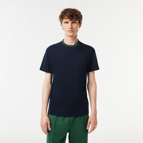ベーシックなデザインにボーダーリブネックで変化をつけた鹿の子地Tシャツ