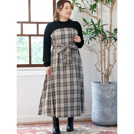 【WEB限定】チェック柄ドッキングワンピース