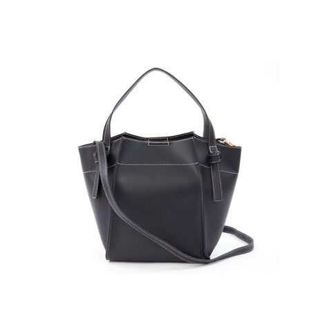 2WAYで使える上品なバッグ。白いステッチと持ち手のデザインがおしゃれで可愛いく、コーディネートのアクセントになります。長財布や500mlのペットボトルがすっぽりと収まるサイズ感ながらも、台形型ですっきりとしたシルエットでお持ちいただけます。内側にポケットが付いているので小物などが散らばらず、分けて入れることができるのも嬉しいポイントです。オンオフ問わず活躍してくれ、長く愛用して頂けます。・ショルダーストラップ調節可