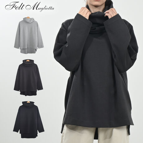 ワイドハイネックスムースプルオーバー