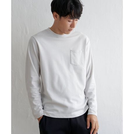 コーデの幅が広い、胸ポケット付きのベーシックな長袖Tシャツ。