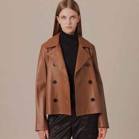 MACKINTOSH LONDON定番のシンプルでクリーンなPコート「KEIGHLEY/キースリー」をレザーで仕立てました。ショート丈のシルエットは軽快でスカート、ワンピースはもちろん、太めのシルエットのパンツと合わせて、ブリティッシュなスタイリングに仕上がります。総裏地です。