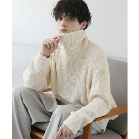 立体感のある生地が魅力の畔編みで仕上げたハーフジップニット。肩幅&身幅に余裕を持たせたオーバーサイズで抜け感を楽しめるサイジング。ゆったりとした絶妙なルーズさで、着こなすだけでトレンド感のあるコーデが完成します。ジップを全て閉じてタートルネックとしてはもちろん、ジップを開けてインナーを見せるなど襟元に変化を利かした様々なスタイリングが可能。秋口から春先にかけて着まわしの効くおすすめのニットです。