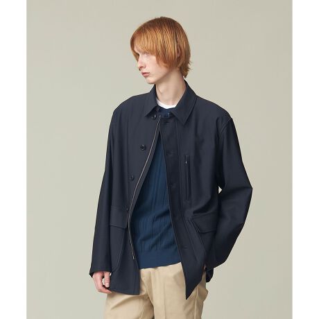 軽快に羽織れるクラシックなデザインバランスのドライビングジャケット。■機能性ハイパワーストレッチ。撥水。■素材薄くて軽い軽快さと通常のストレッチ素材とは一線を画すハイパワーストレッチが特徴。生地の表面に凹凸を感じるドビー組織を採用しているため薄い肉感ながらペラペラした心元のなさもありません。■シルエット全体的にゆとりのあるボクシーなシルエット。■仕様薄く軽くを意識して裏地は用いず一枚仕立て。余計なデザインは省き、控えめで上品に仕立てました。■コーディネートきれいめパンツからよりカジュアルなパンツまで幅広く合わせやすいアウターです。インナーにはシャツやハイゲージニットなど、崩し過ぎないスタイリングがバランス◎■デザイナーコメント上品な男性に着用いただくイメージで シンプルなデザインを心掛け ました。ブリティッシュハンティングジャケットにも通じるクラシックなたたずまいと、軽快に着羽織れるカーコートの要素を併せ持った通称ドライビングジャケットです。