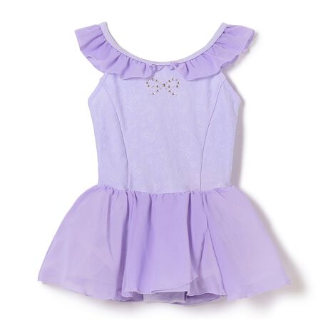 フロントから肩先までのシフォンの襟が上品で華やかなスカート付レオタード